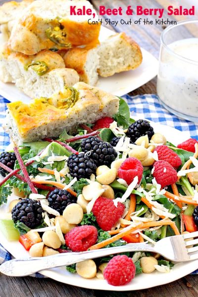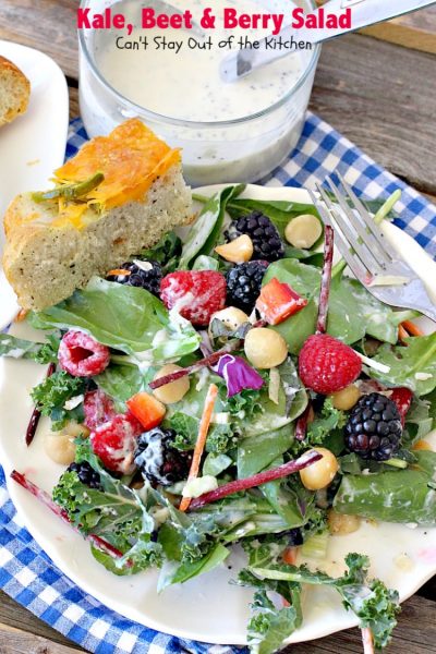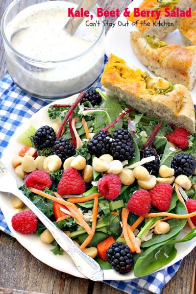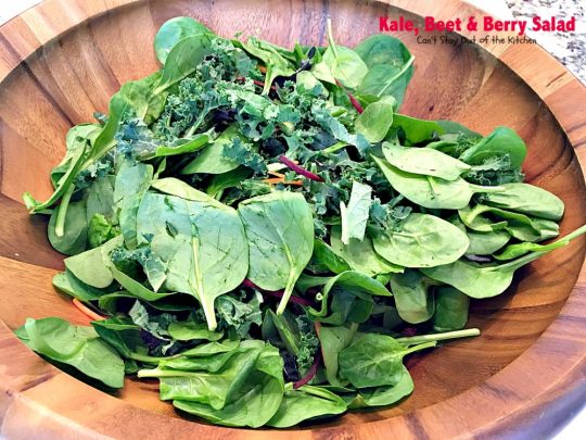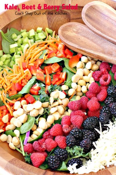 If you’re looking for creative ways to get your family to eat healthier, Kale, Beet and Berry Salad could certainly be your answer. It’s full of antioxidants and everything great for your body. The salad not only looks elegant enough for company, it’s so tasty that you’ll find yourself coming back for second helpings!