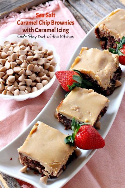 If you’re looking for one of those “to die for” recipes, you’ve got to make up a batch of Sea Salt Caramel Chip Brownies with Caramel Icing for your next party or special occasion. Be but warned! These brownies are addictive. 🙂