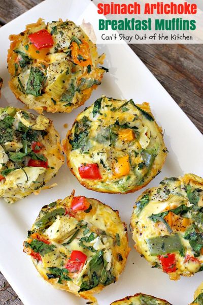 Oh my goodness, get this: Spinach Artichoke Breakfast Muffins! Yes, yes yes. š® Many of you know I have several Breakfast Muffins recipes, including the original recipe with bacon, one with ham and one with butternut squash. They are all awesome. (No bias here). š