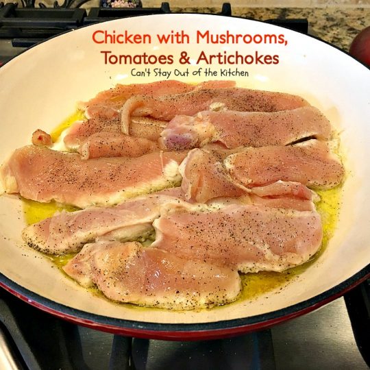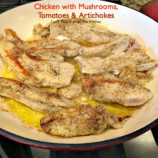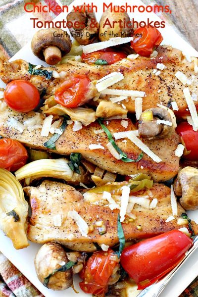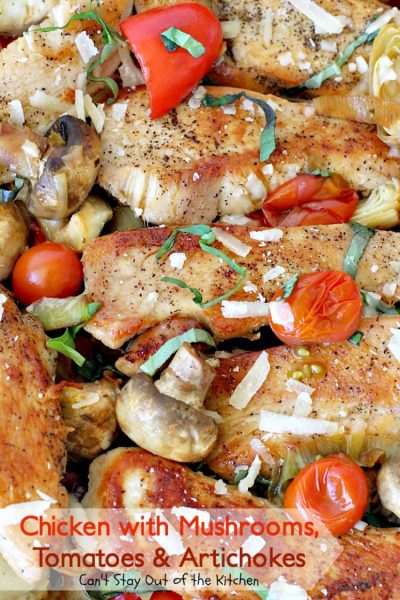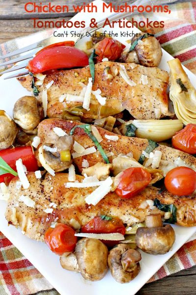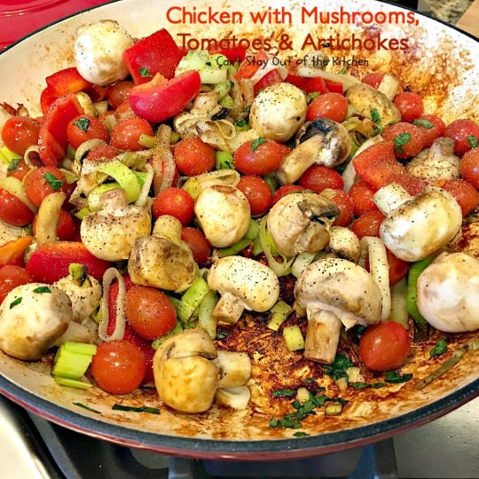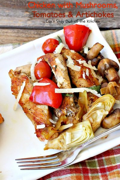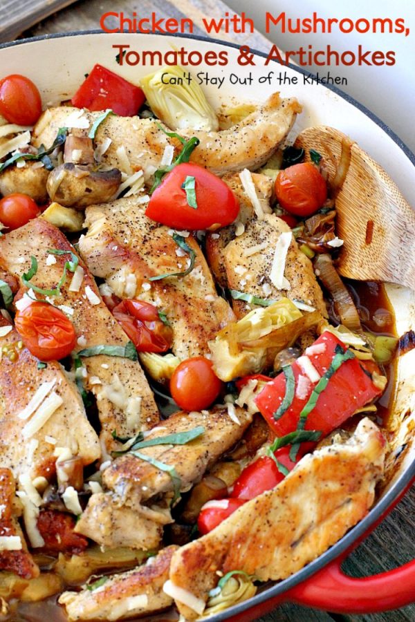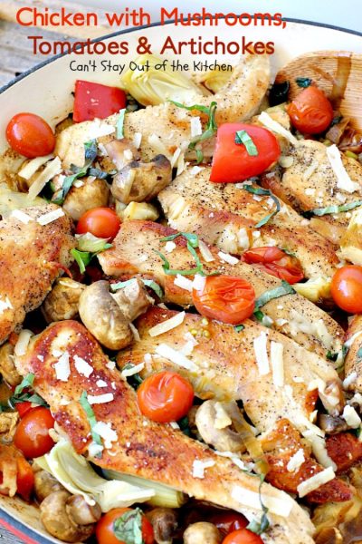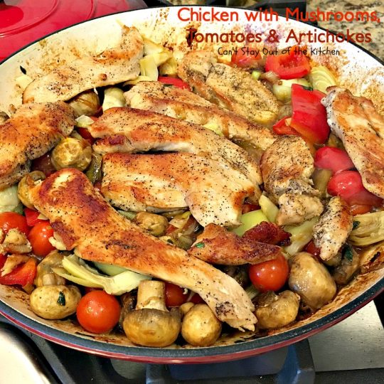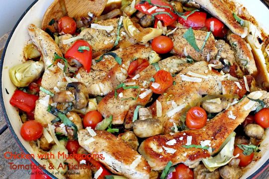 Chicken with Mushrooms, Tomatoes and Artichokes is a wonderful one-dish skillet supper.