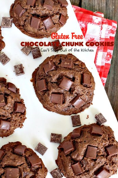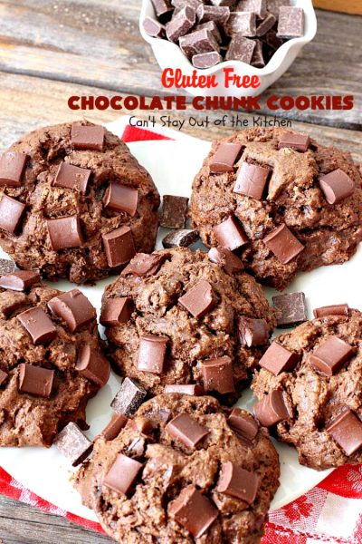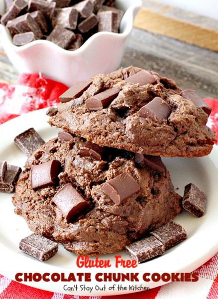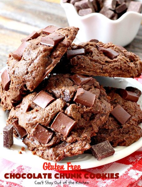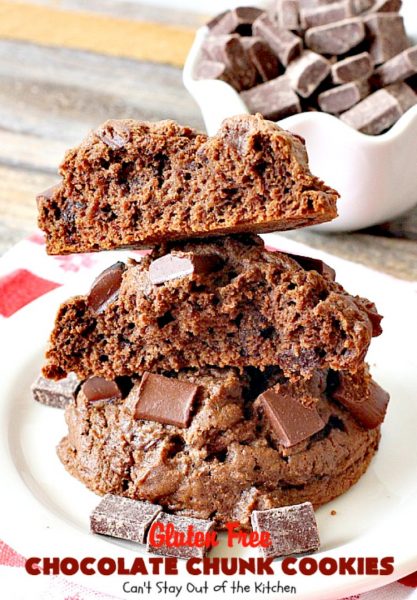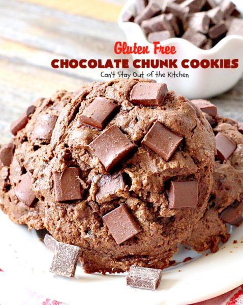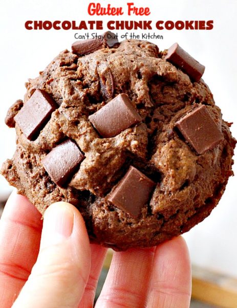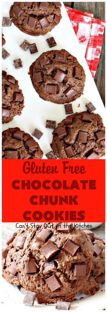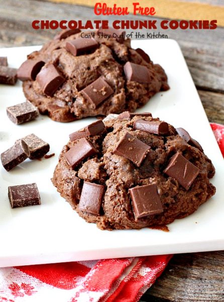 Gluten Free Chocolate Chunk Cookies explode with chocolate flavor. They’re a chocolate lover’s delight.