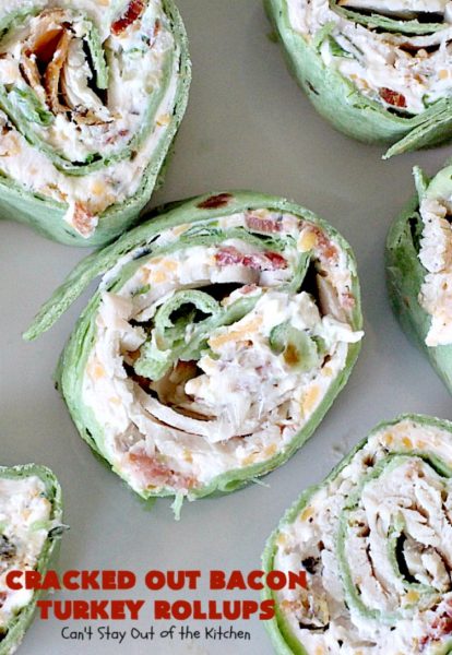 Cracked Out Bacon Turkey Rollups are great to serve for baby or bridal showers, potlucks, backyard BBQs, family reunions or even office parties. Everyone loves them.
