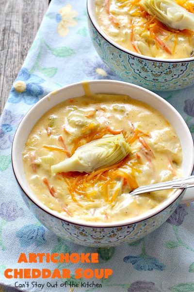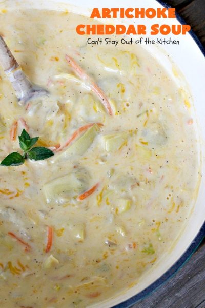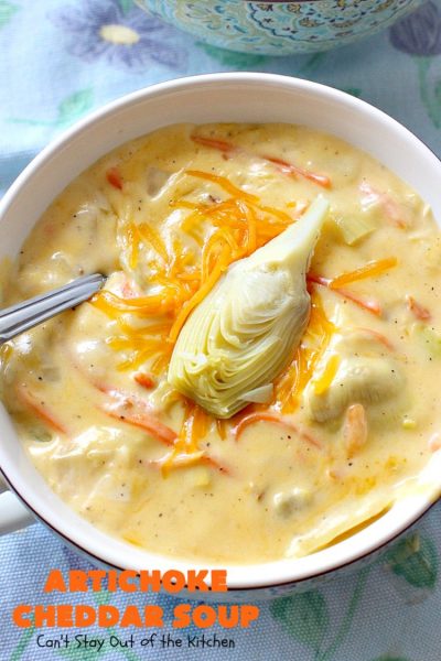Artichoke Cheddar Soup is so delightful you’ll want this on a regular menu rotation.