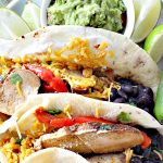 The accompaniments are what make this dish great. We’ve always spread the tortillas with sour cream. Then you can add cheese, salsa, guacamole, rice, beans, cilantro, lime and avocados to the fajita mixture in any amounts you prefer. Normally, I would have made a homemade salsa too, but didn’t have time. Pico de Gallo is also great for this recipe. I actually eat fajitas without the tortilla to keep them gluten free, but most people will prefer eating these with tortillas. H-E-B grocers makes a quality homemade tortilla from scratch in their Texas stores. They are our preferred tortillas.