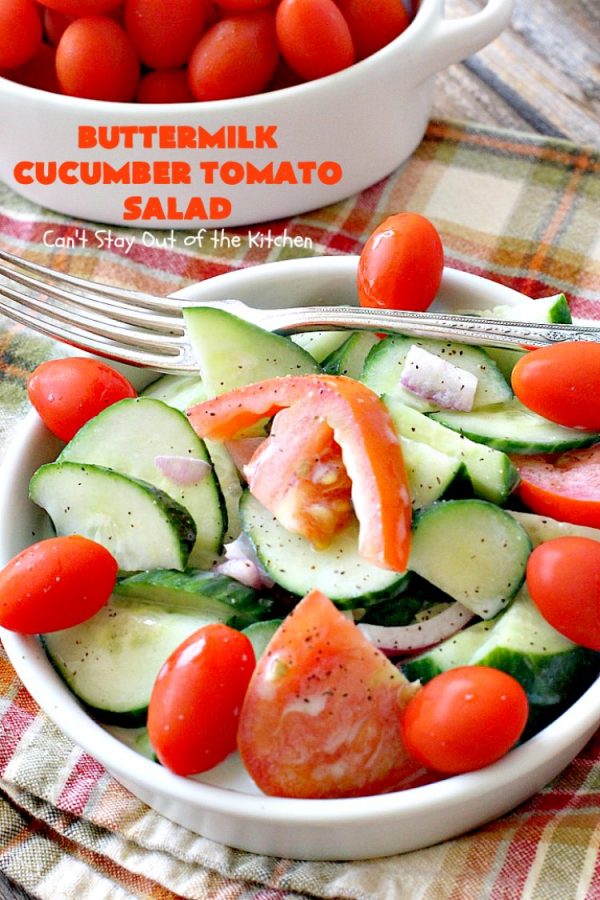 Buttermilk Cucumber Tomato Salad is a nice crisp salad that’s a great side dish to make with chicken.