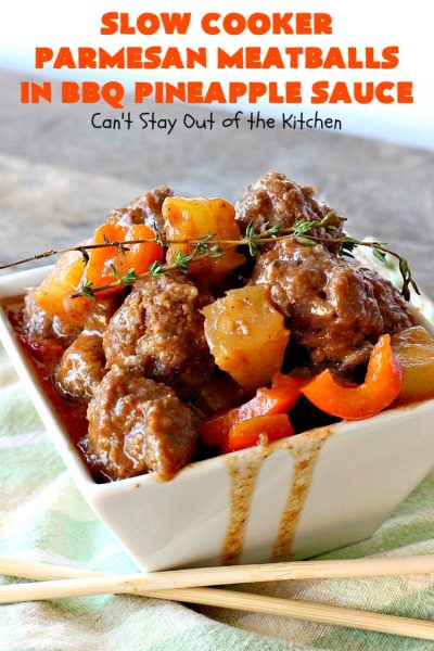 SLOW COOKER PARMESAN MEATBALLS IN BBQ PINEAPPLE SAUCE