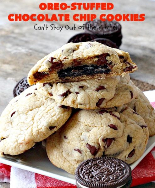 I loved these Oreo-Stuffed Chocolate Chip Cookies. They were one of the BEST cookies we made in our neighborhood cookie giveaway this year. And we got rave reviews from several folks who loved them. Who doesn’t want to bite into a cookie with an Oreo in the middle! Drool, baby, drool. š
