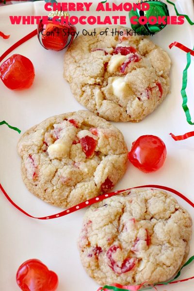 Cherry Almond White Chocolate Cookies should be on the top of your Christmas baking list!