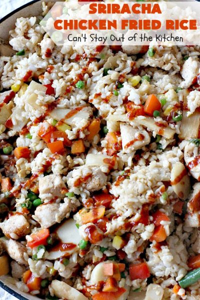 If you’re looking for an outstanding 30-minute weeknight meal that’s healthy and gluten free, I can’t recommend Sriracha Chicken Fried Rice highly enough. Especially if you like a little zip in your meals. This has heat without being overpowering. It’s also got a delightful crunch from the bamboo shoots and water chestnuts. We loved it and believe you will too.