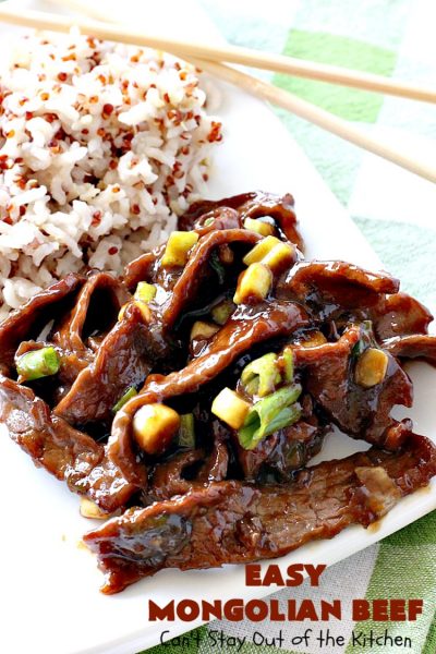 I loved this scrumptious Easy Mongolian Beef dish! This entree is a terrific 30-minute recipe! It’s fantastic for weeknight suppers when you have to put a meal on the table quickly. It’s also one of the best tasting Asian style beef recipes with rice I’ve eaten. This beef entree includes ginger, jalapeno pepper and green onions in a very tasty soy and brown sugar sauce. It’s delightful served over rice with a quinoa blend.