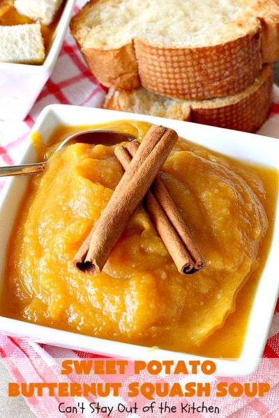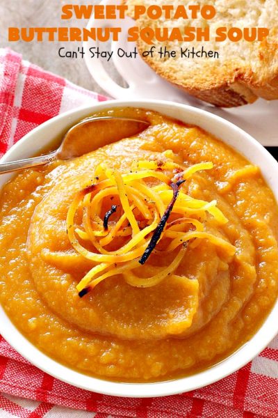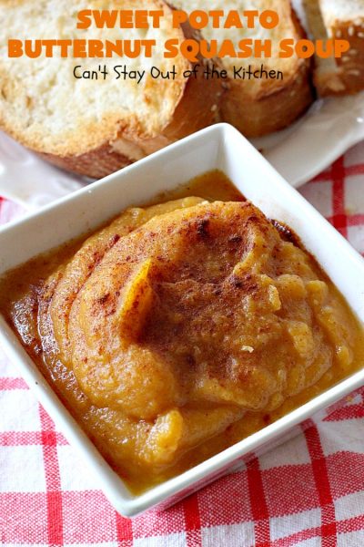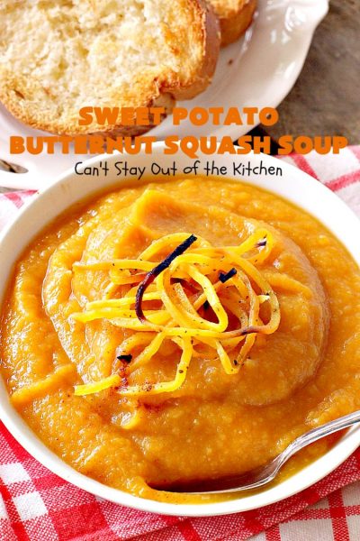 Sweet Potato Butternut Squash Soup is creamy and thick.
