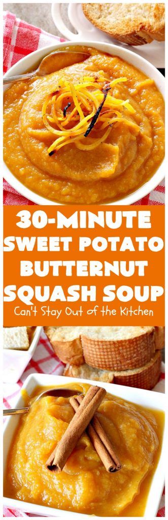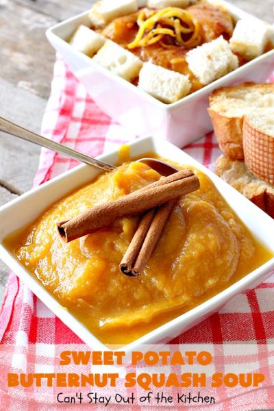 Sweet Potato Butternut Squash Soup will warm you up on cold, winter days.