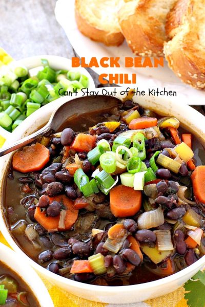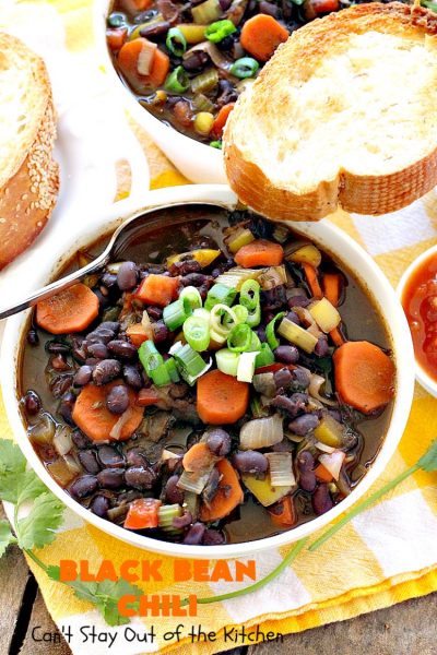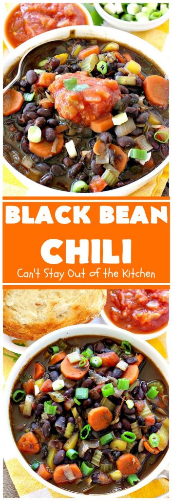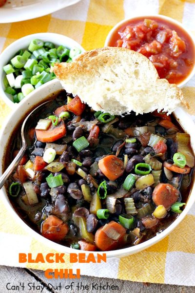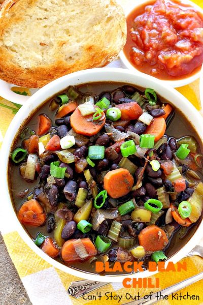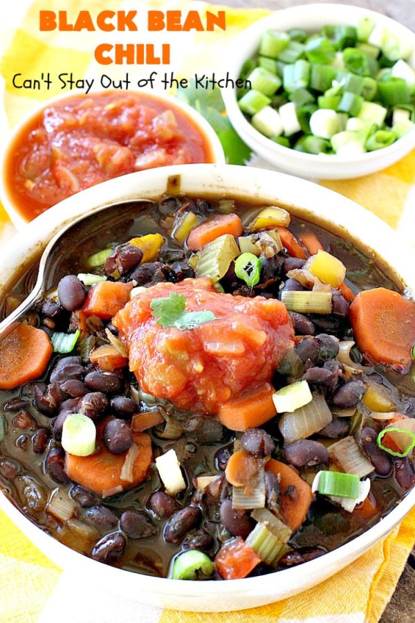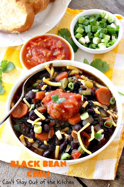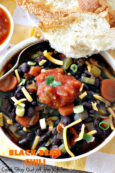 I served Black Bean Chili with salsa and without salsa. I added cheese and left off the cheese, sometimes I served it with green onions. Every which way I served it was heavenly. Plus, it’s terrific with homemade bread. This amazing Tex-Mex recipe was comfort food extraordinaire! š