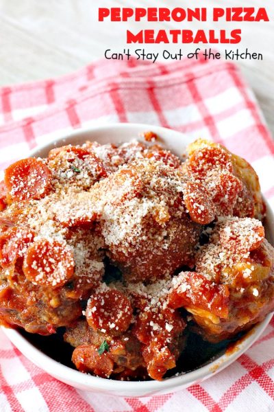 Pepperoni Pizza Meatballs — Can’t Stay Out of the Kitchen | My Meals are on Wheels