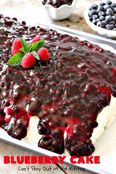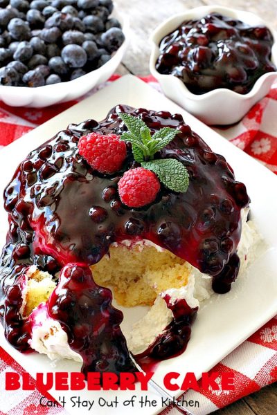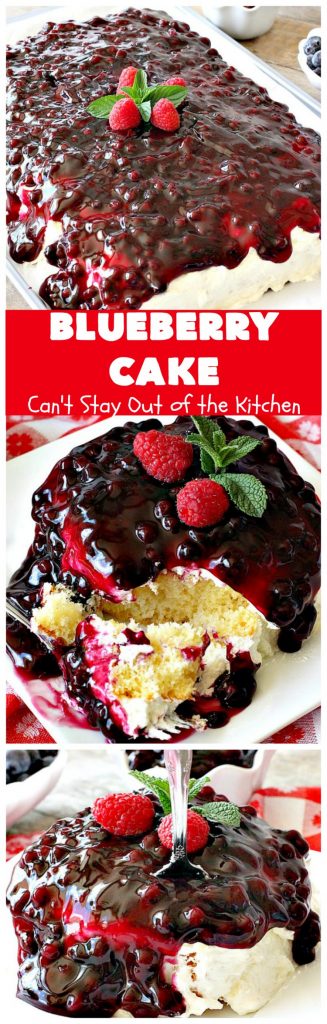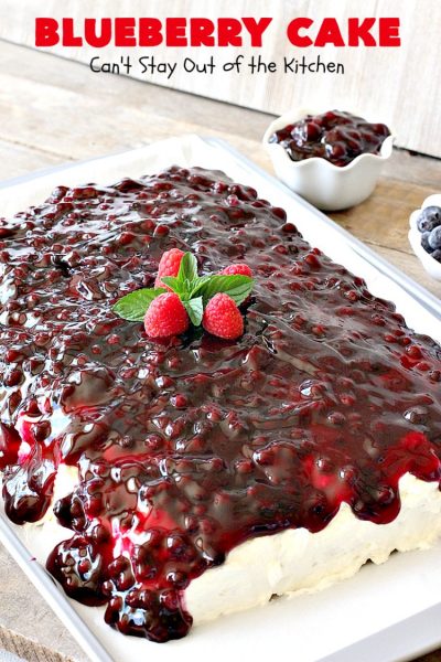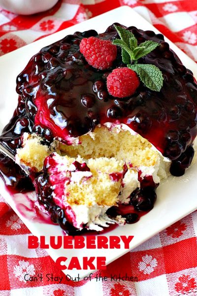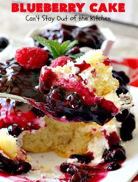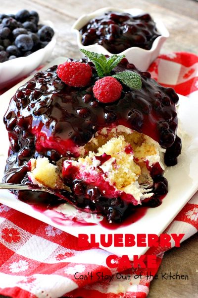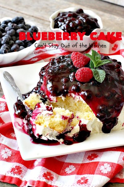 Blueberry Cake is terrific for potlucks, summer BBQs and family reunions. But don’t say I didn’t warn you. There won’t be any leftovers once people start digging into this fabulous cake.