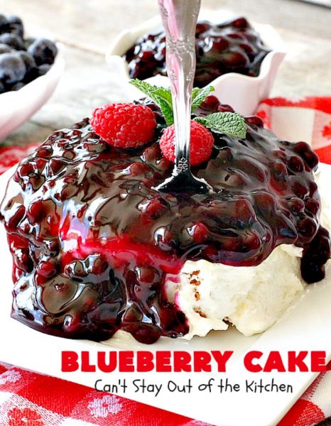 If you’re looking for a fantastic dessert for Mother’s Day, Father’s Day, Memorial Day or Fourth of July, this Blueberry Cake recipe can’t be beat. It’s just one of those cakes you can’t get enough of. Because it’s so festive and beautiful, everyone will be digging into the cake to get ever last morsel. You’ll probably come home with NO leftovers. š Sorry about that….if you’re wanting leftovers, that is. It ain’t gonna happen. š