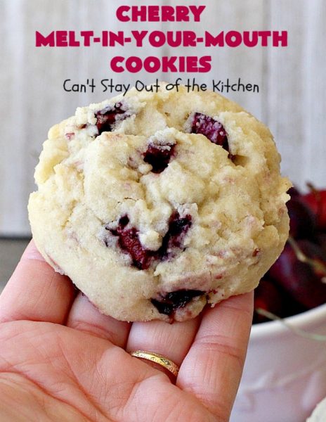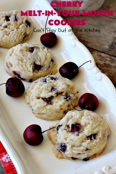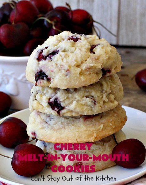 Cherry Melt-In-Your-Mouth Cookies are a terrific dessert to make for family reunions, backyard barbecues and summer potlucks when fresh cherries are in season.