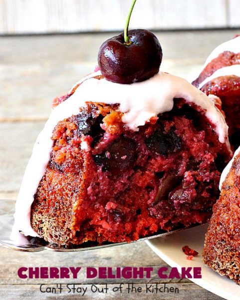 For a totally dynamite cake with fresh cherries thrown in for good measure, give this Cherry Delight Cake a try. I guarantee you will want slice, after slice, after slice! If fresh cherries are no longer available, you can substitute canned cherries. Just be sure to rinse and drain them really well before adding to the batter. Enjoy.