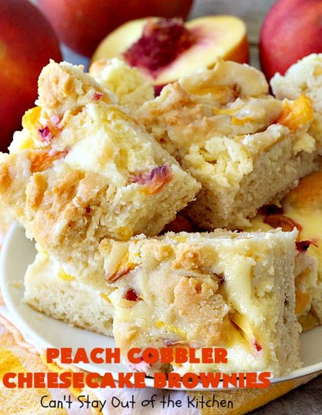 Peach Cobbler Cheesecake Brownies — Can’t Stay Out of the Kitchen | My Meals are on Wheels