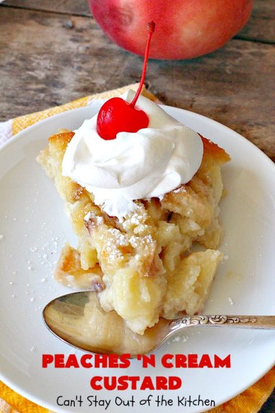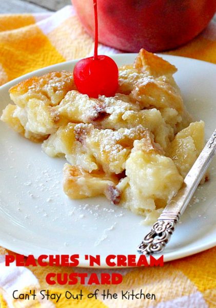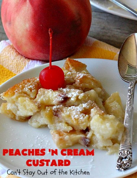 Peaches ‘n Cream Custard is really not a cake. It’s a cross between a custard and pudding with just a little more body.