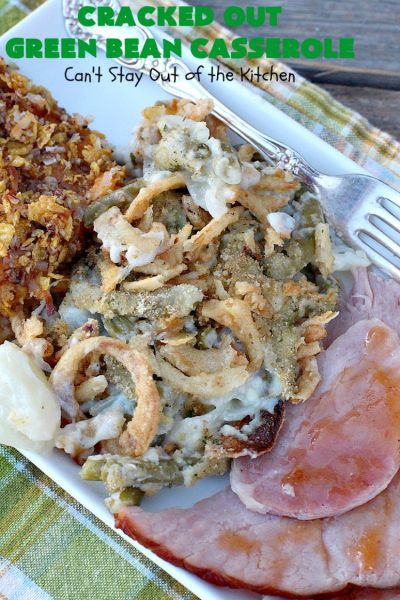 Cracked Out Green Bean Casserole should be on every holiday menu! We enjoyed it with Apricot Glazed Ham and Cracked Out Green Bean Casserole.