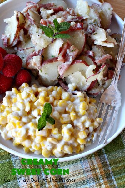 Creamy Sweet Corn teams up really well with Creamy Scalloped Potatoes and Ham.