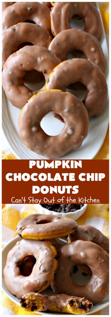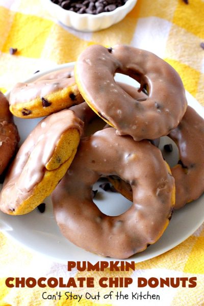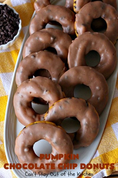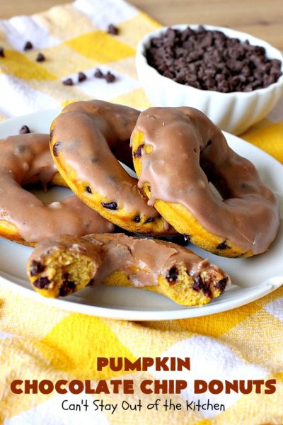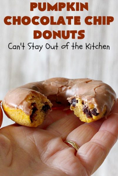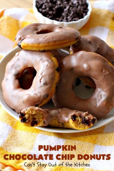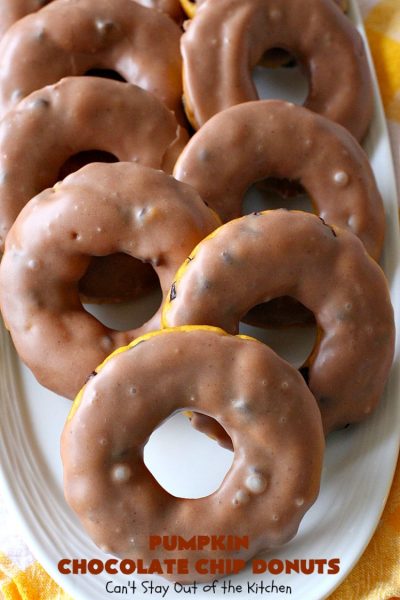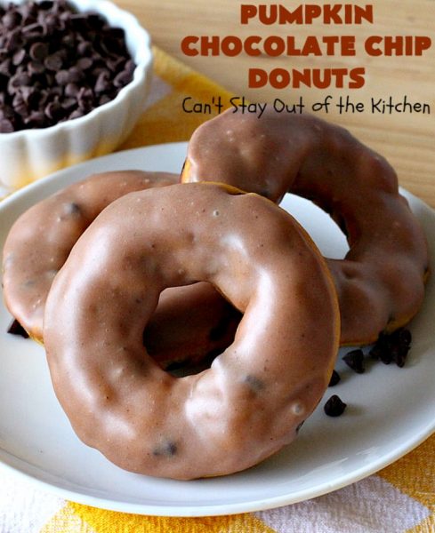 Pumpkin Chocolate Chip Donuts are terrific for fall breakfasts. Break out a little cider and you’re good to go!