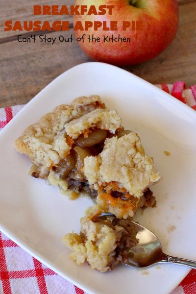 Hi, Marie. This is one of my favorite breakfast pies ever. Love the combination of flavors with sausage, apple, cheese and a little brown sugar.