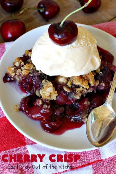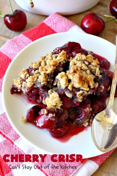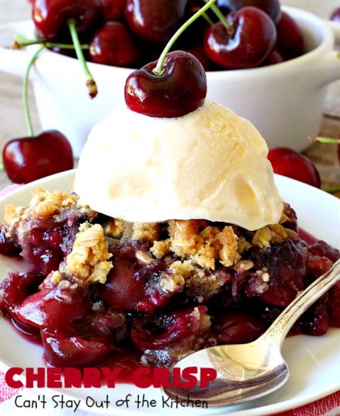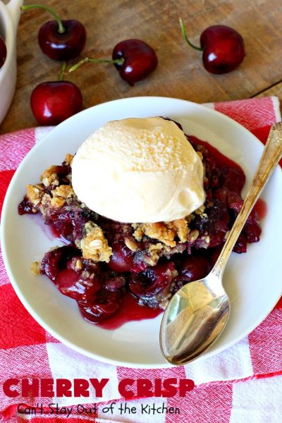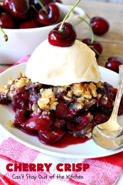 The cherry crisp makes my mouth water, but 10 cups of cherries is alot to part with, just making 1 dessert! I’d rather pit the cherries and freeze them to eat and part with a few to bake with! I bought 5 lbs of cherries this week and ate most of them and now they’re almost gone! 😕 I have no will power when it comes to saving any, when I first buy them in the summer! 😂