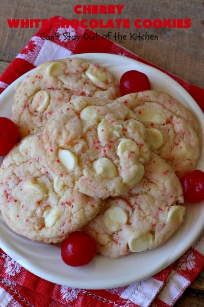 Cherry White Chocolate Cookies are terrific for tailgating parties, potlucks, family reunions and grilling out with friends.