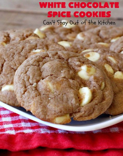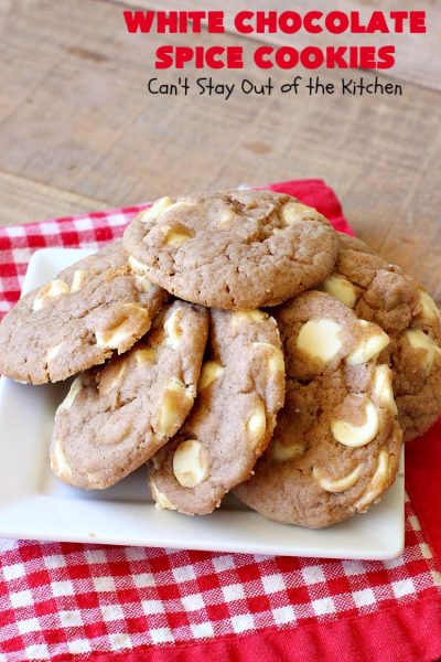 White Chocolate Spice Cookies are wonderful for holiday baking too. Try them at your next Christmas Cookie Exchange.