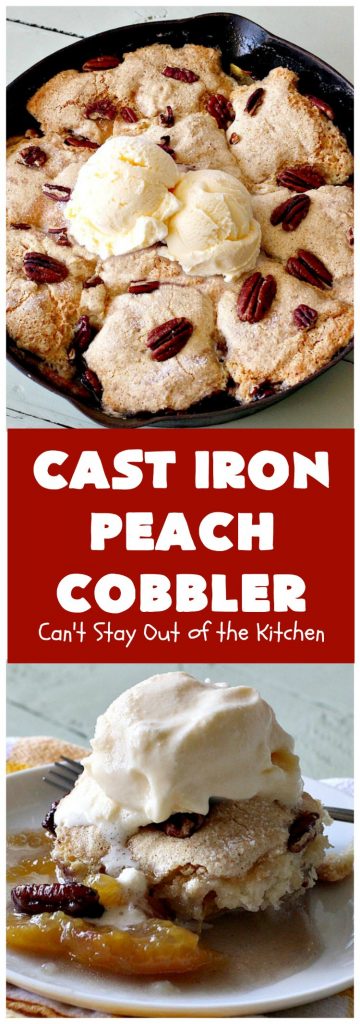 Cast Iron Peach Cobbler is sensational southern comfort food.