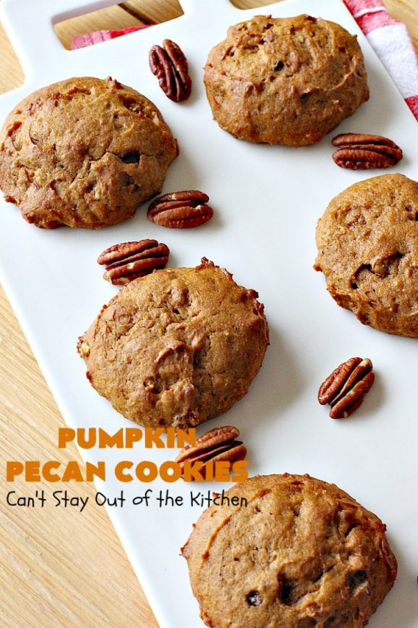 Pumpkin Pecan Cookies are terrific for tailgating parties and potlucks. Especially during the fall and winter months.