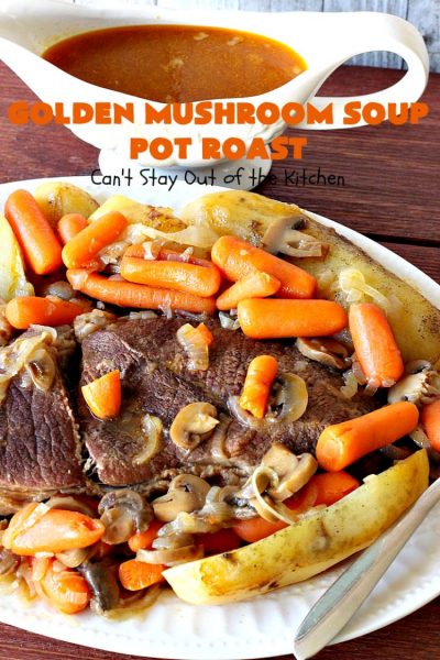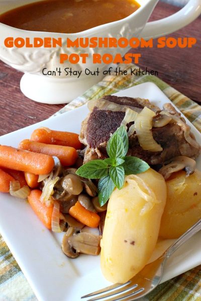 Golden Mushroom Soup Pot Roast | Can't Stay Out of the Kitchen | this #PotRoast #recipe has always been a family favorite. It uses a can of #CampbellsGoldenMushroomSoup which exponentially amps up the flavors & makes this a comfort food entree everyone loves. #beef #BeefPotRoast #potatoes #carrots #GoldenMushroomSoup  #GoldenMushroomSoupPotRoast