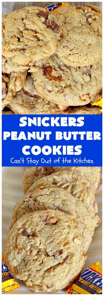 Snickers Peanut Butter Cookies will knock your socks off! Better give ’em a try! 🙂