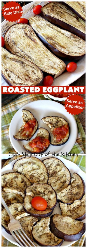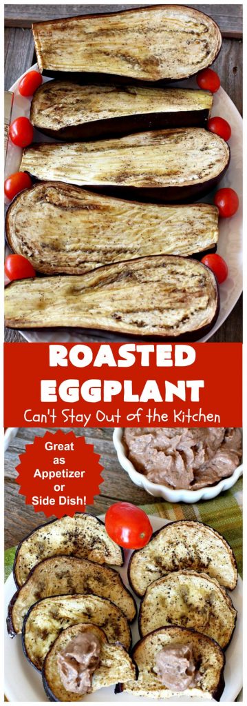 Roasted Eggplant is a great idea for tailgating or holiday parties when you’re trying to eat healthy.
