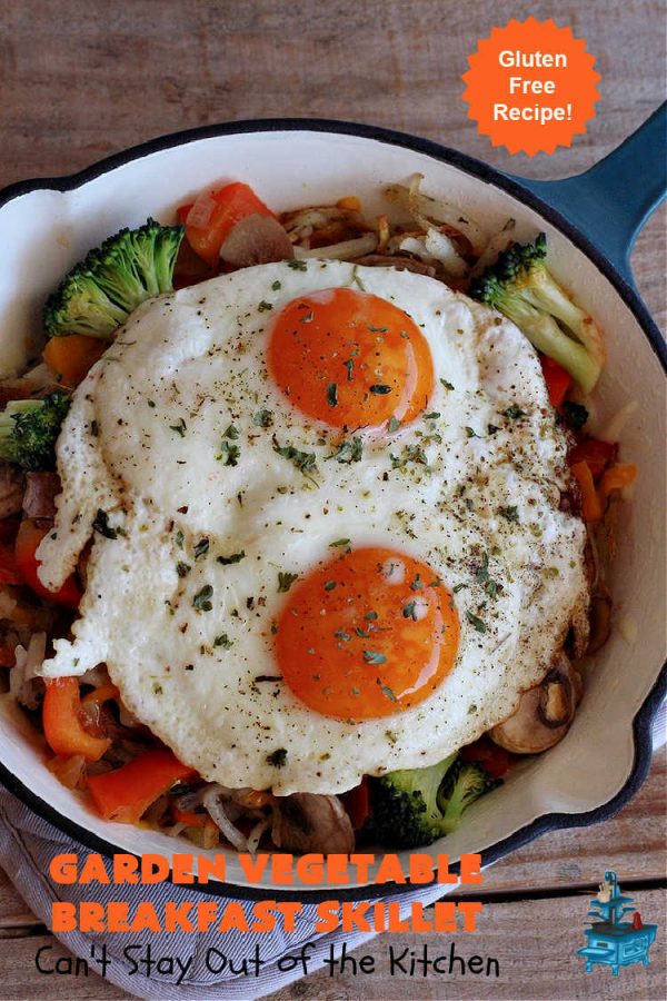 Garden Vegetable Breakfast Skillet is one of those “knock your socks off” breakfast entrees. 🙂