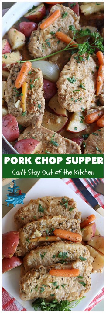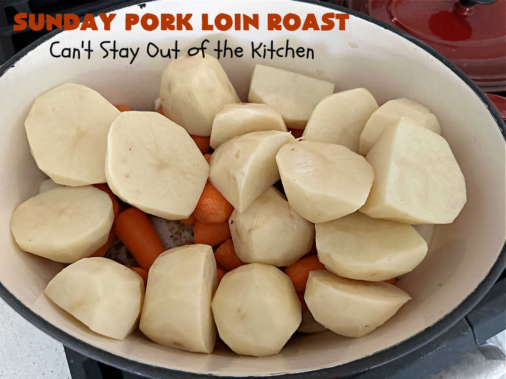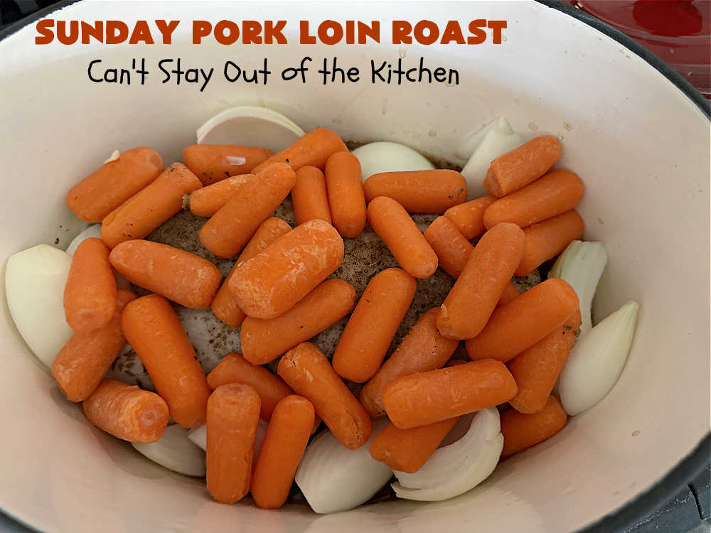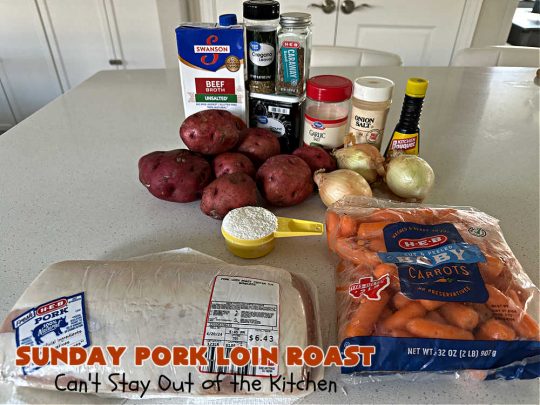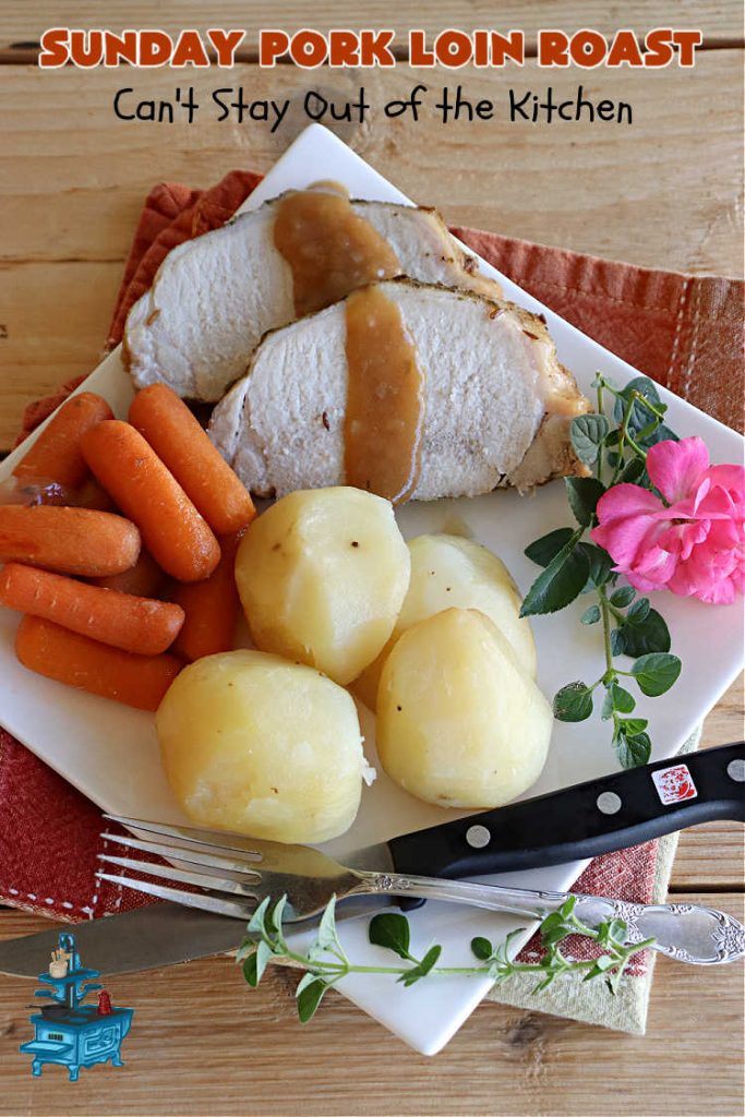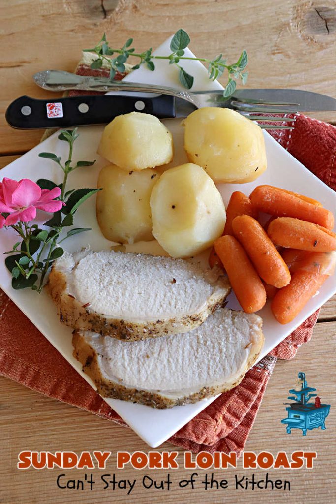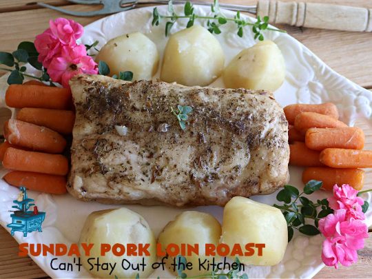 I made this delicious Sunday Pork Loin Roast back in early June 2024 for a new family moving into our neighborhood. And, yes, I actually did make it for them on a Sunday! They were just moving in and that was the day they requested a meal. I had a frozen pork loin that I wanted to use up and thought this would be a great recipe to use it in. I was right. This entree was a fantastic one-dish meal, although I added Corn Pudding, Homemade Bread and a Magic Pear Cobbler. The family raved and raved over that meal.