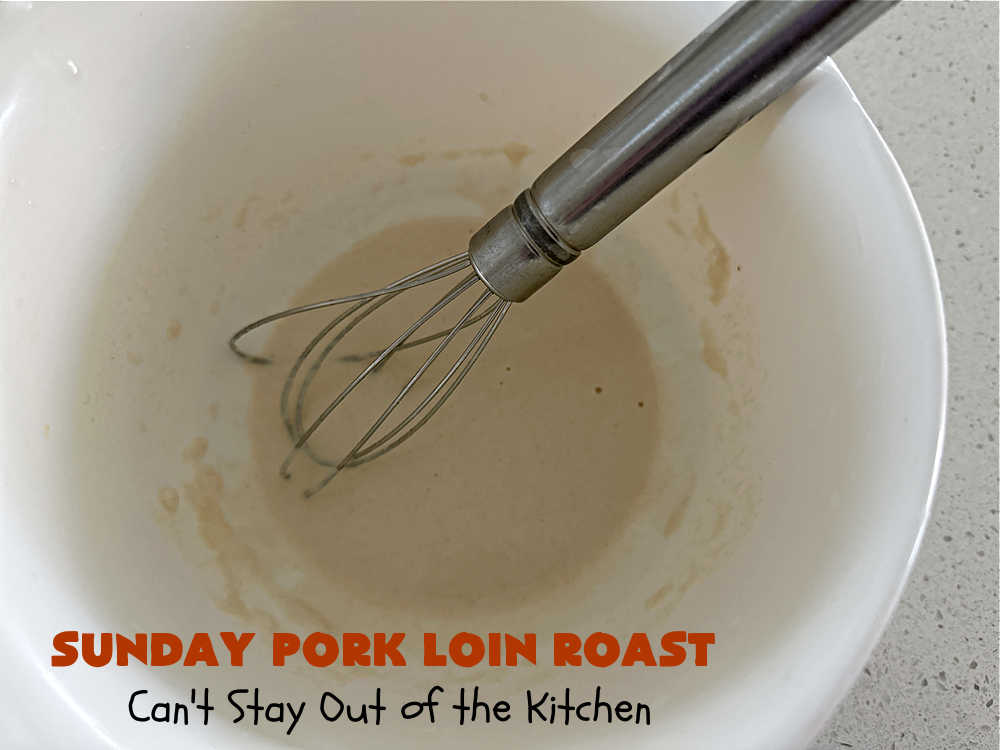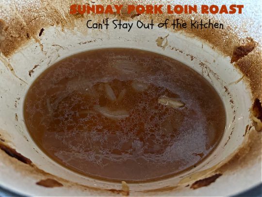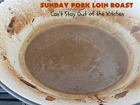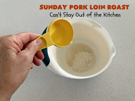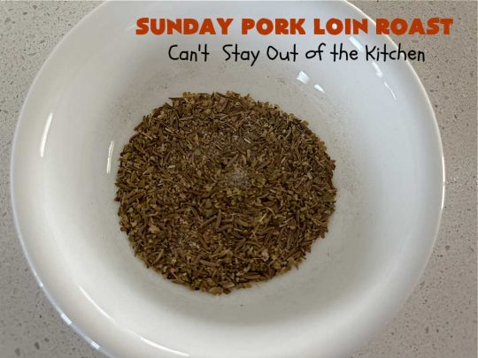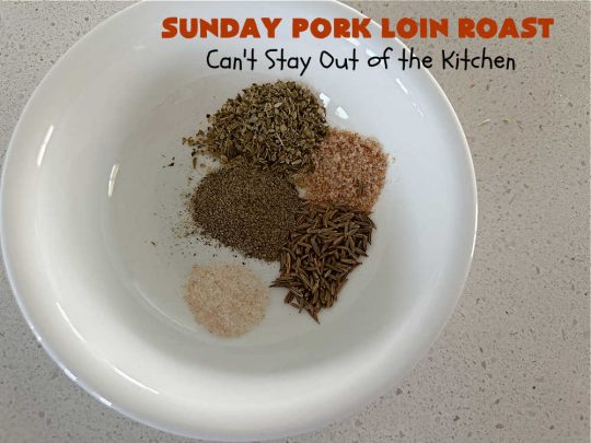 One of the things that made this roast so special is the combination of herbs and seasonings used to rub in the roast before cooking. These seasonings will also help flavor the gravy when it is made. All I can say is Sunday Pork Loin Roast is fantastic. I’ve given directions for either a three-pound or four-pound pork loin roast, because it’s hard to always find the size you need. I used a four-pound roast for this recipe and it yielded about 12-14 servings.