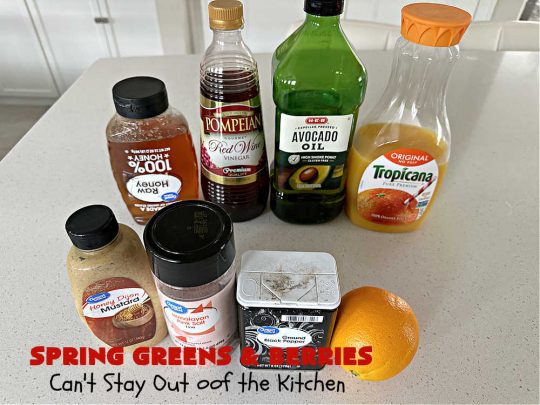 I’ve put together another fantastic Green Salad recipe for you today. Spring Greens With Berries is absolutely delectable. This Tossed Salad includes blueberries, strawberries, raspberries, mandarin orange segments and toasted almonds. The Homemade Orange Vinaigrette is made with healthy ingredients and provides a hint of orange flavoring that complements the salad. I thought it was irresistible!