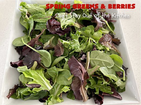 Spring Greens with Berries is a marvelous salad to make for Ladies’ Luncheons.