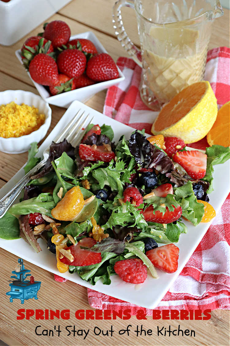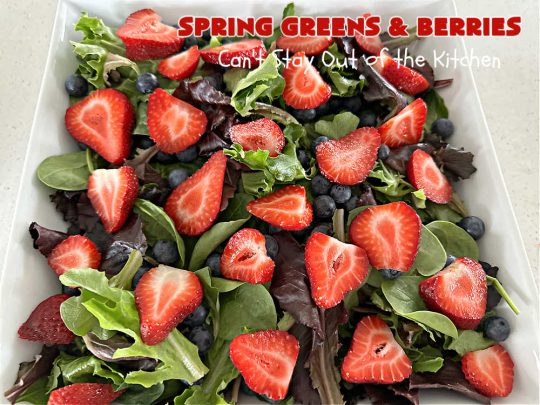 Spring Greens with Berries is an excellent choice for any lunch or dinner menu. If you’re looking for healthy as well as scrumptious, this is the recipe for you!
