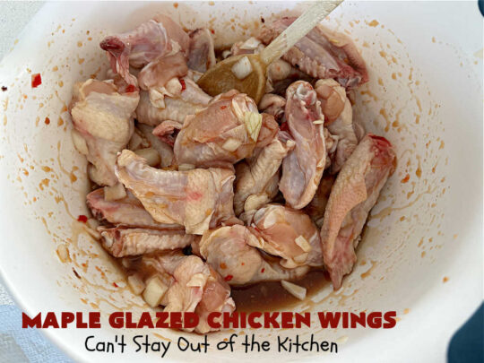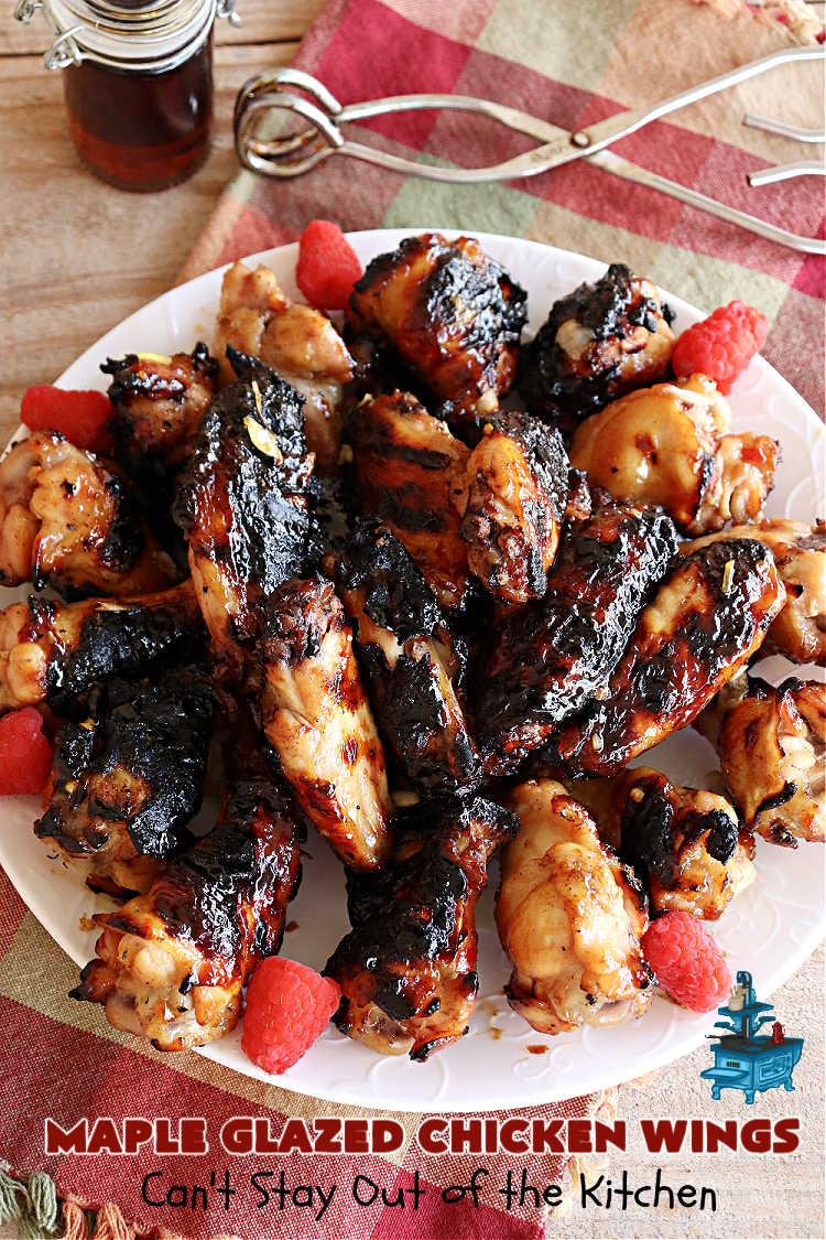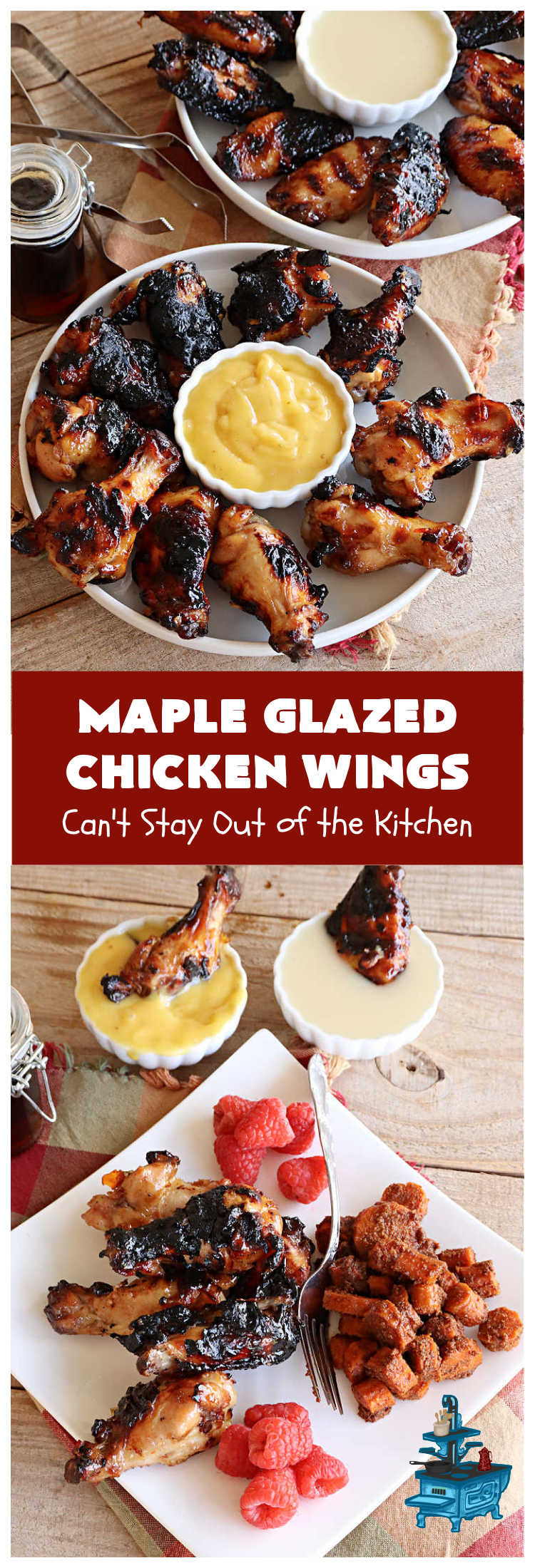 Maple Glazed Chicken Wings is a great appetizer served with Honey Mustard or Chipotle flavored dipping sauces.
