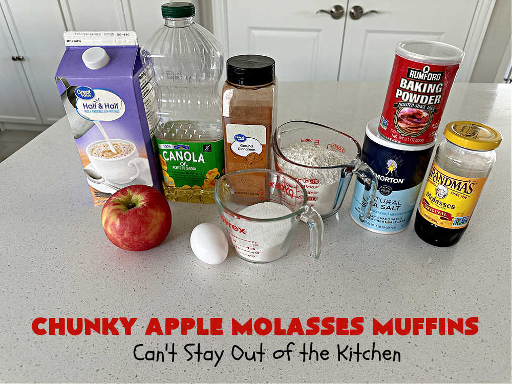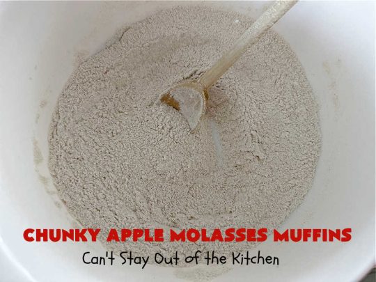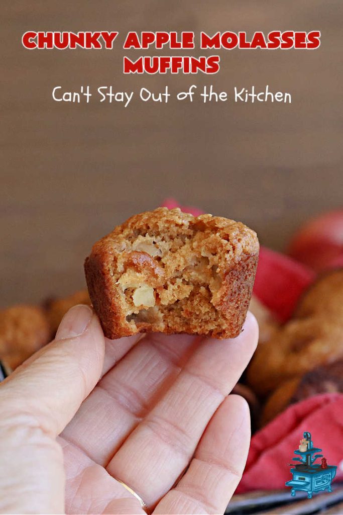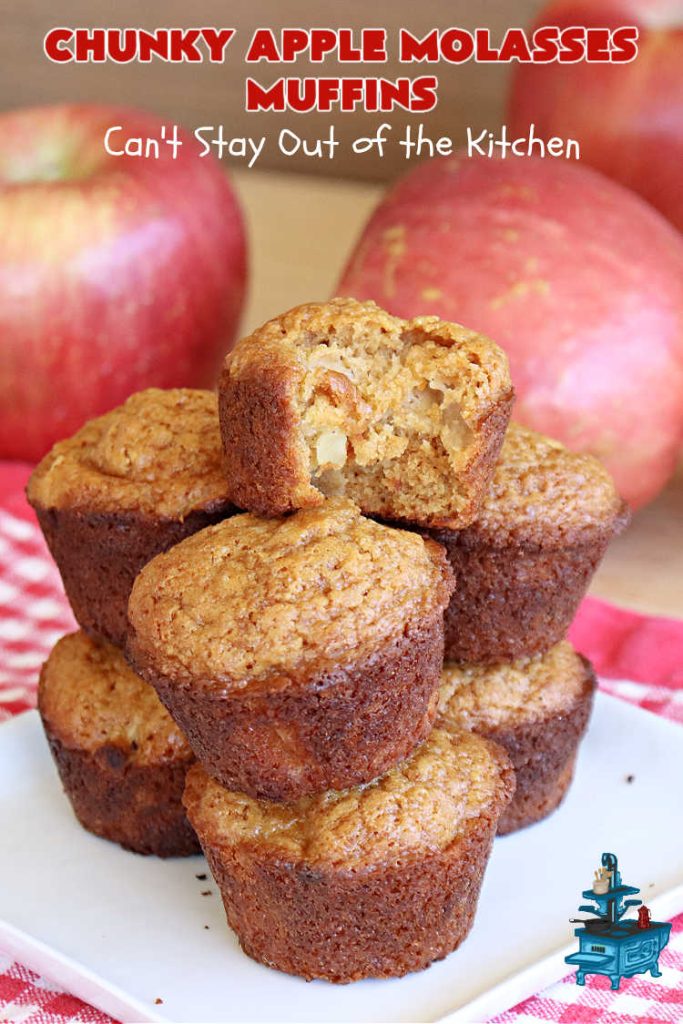 Chunky Apple Molasses Muffins will remind you of eating treats in Grandma’s kitchen. 🙂