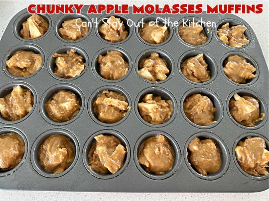 You can bake Chunky Apple Molasses Muffins in regular muffin tins or miniature muffin tins. Both turn out great.
