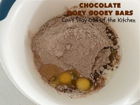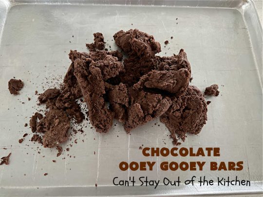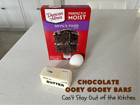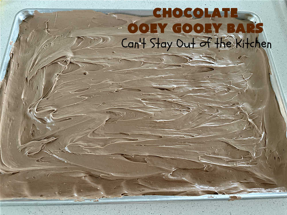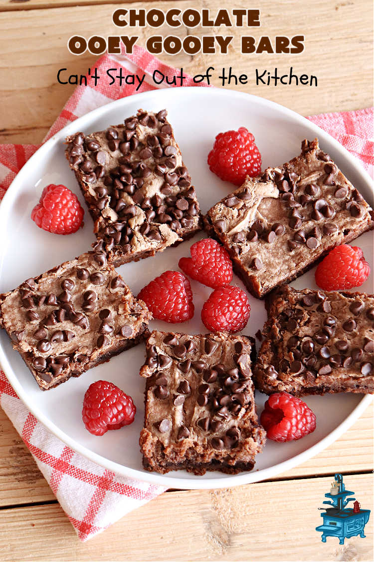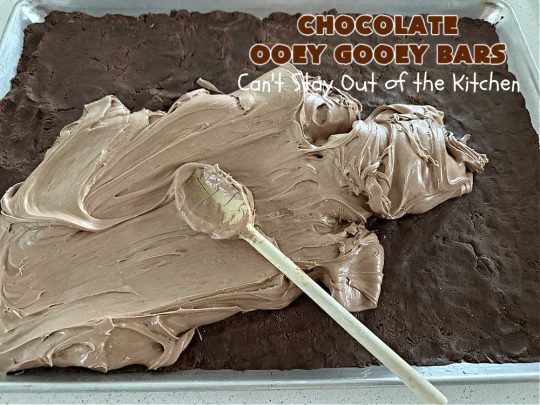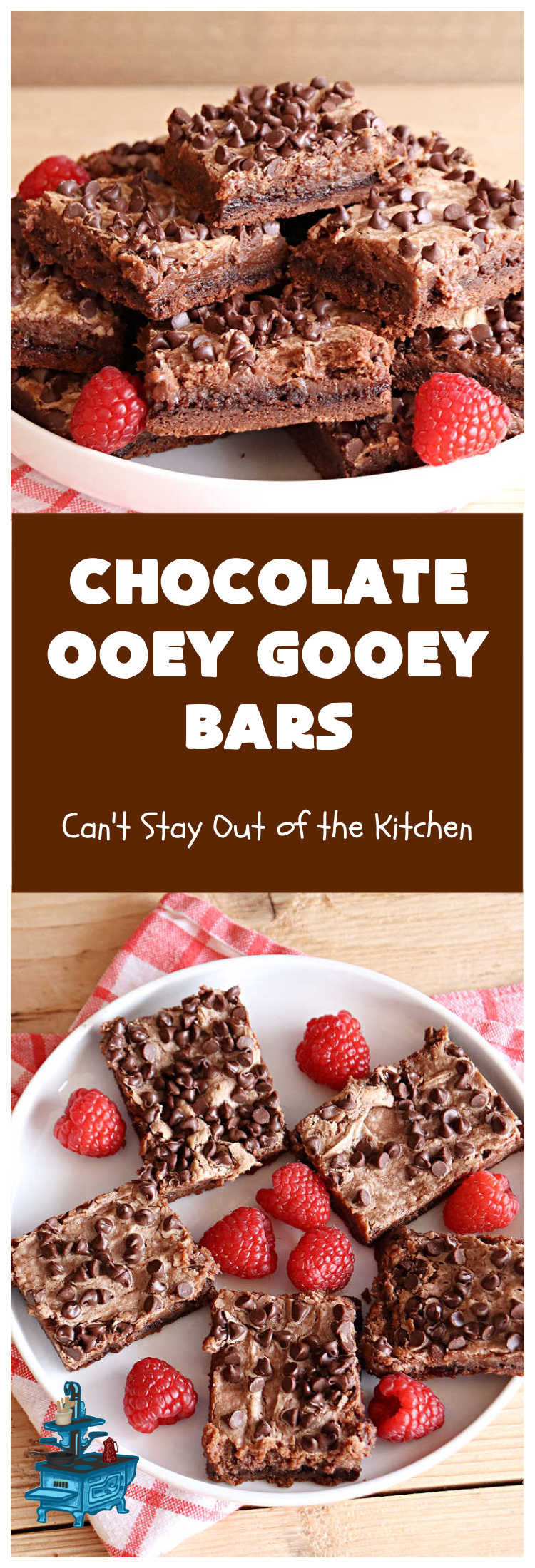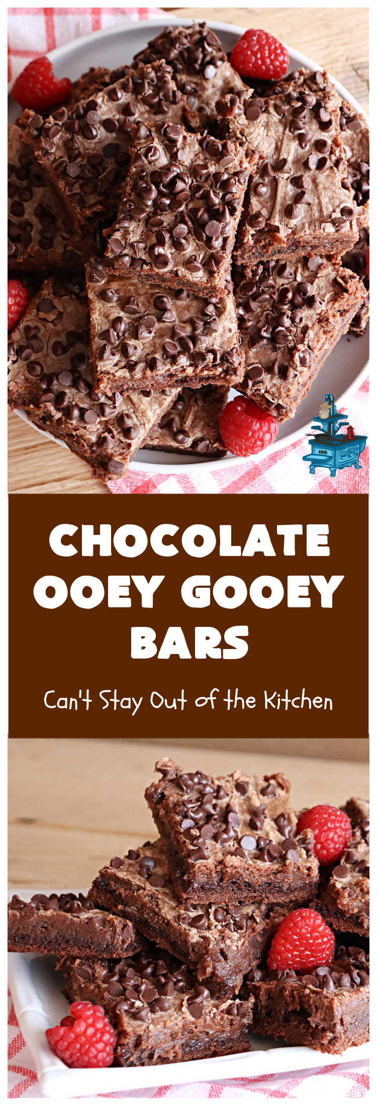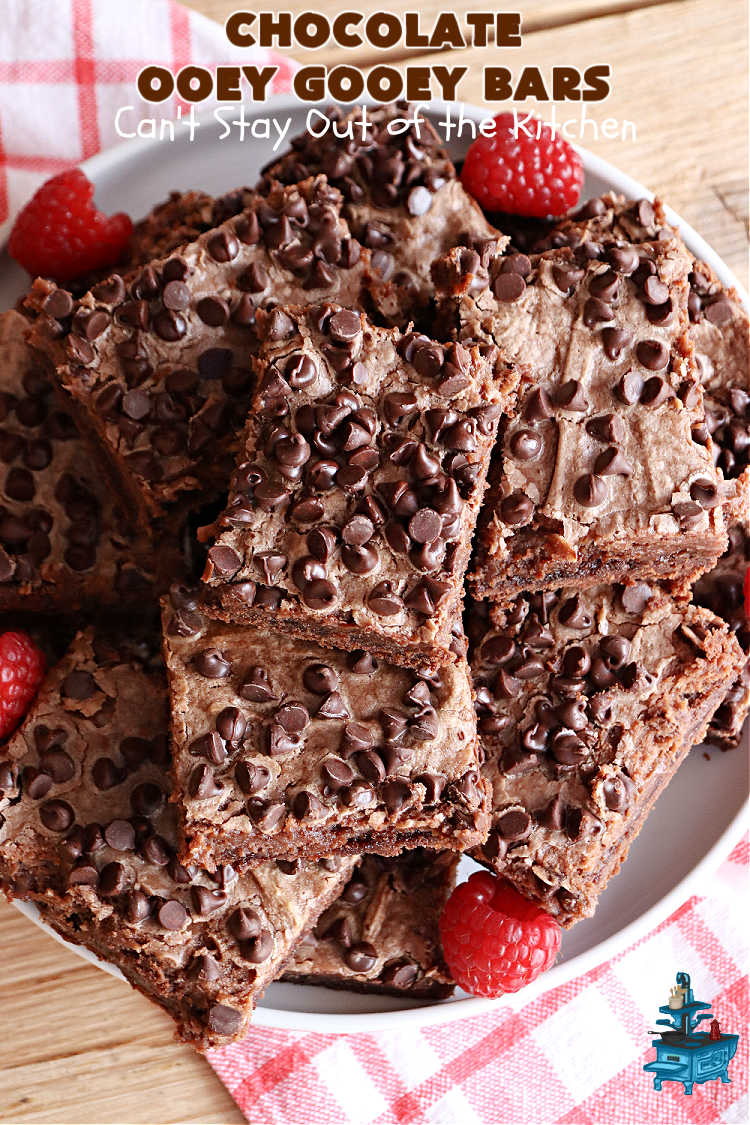Chocolate Ooey Gooey Bars are terrific for tailgating parties, potlucks and Backyard Barbecues.