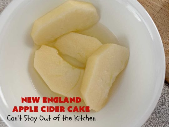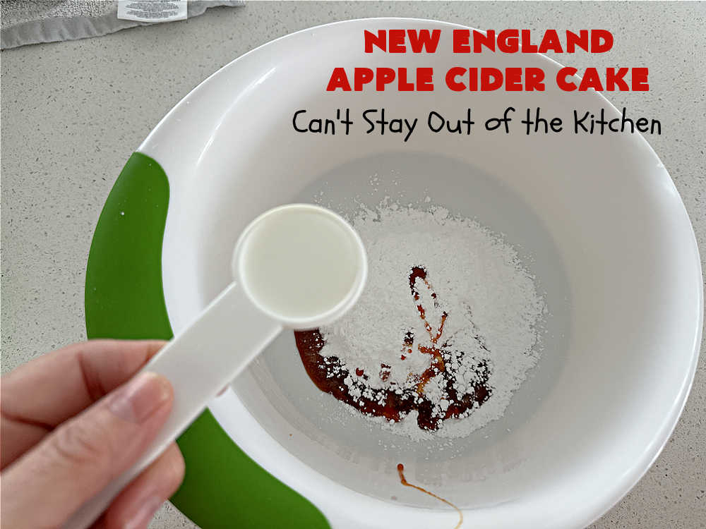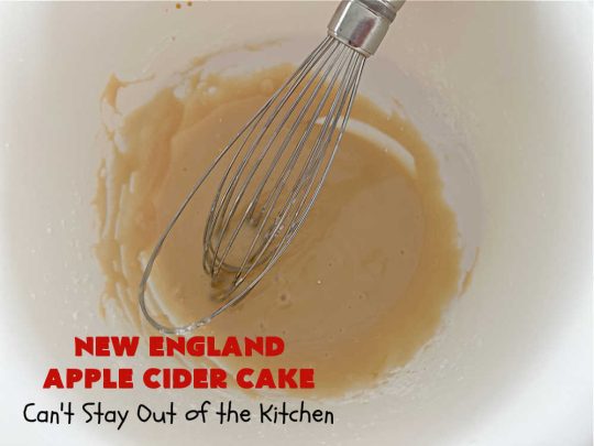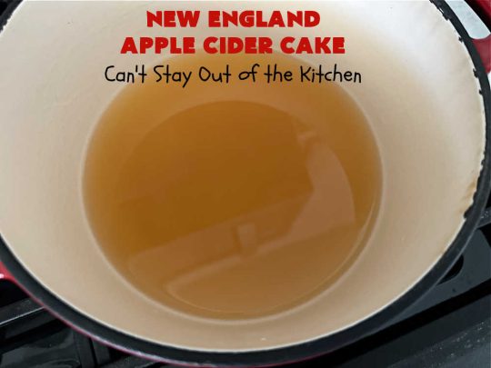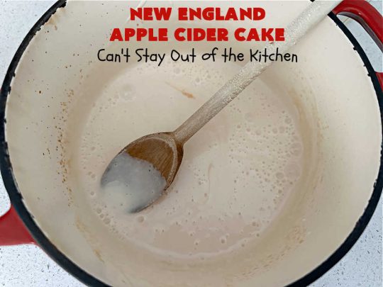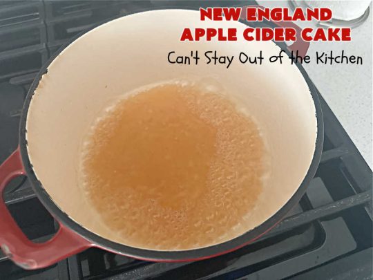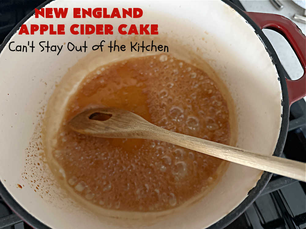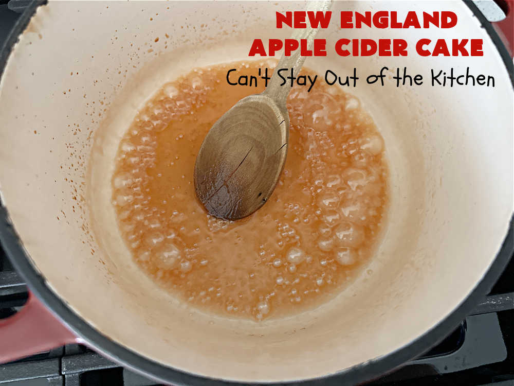 Apple Cider is reduced down to a syrup and used to strengthen and enhance the lovely apple flavor of this cake.