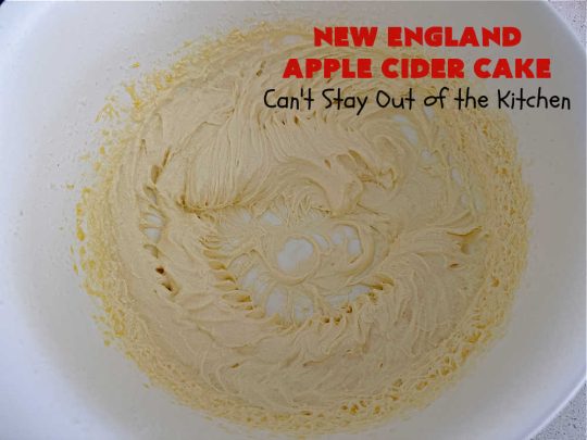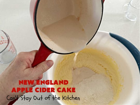 - Add flour mixture alternately with apple cider mixture to the egg mixture in two or three batches.