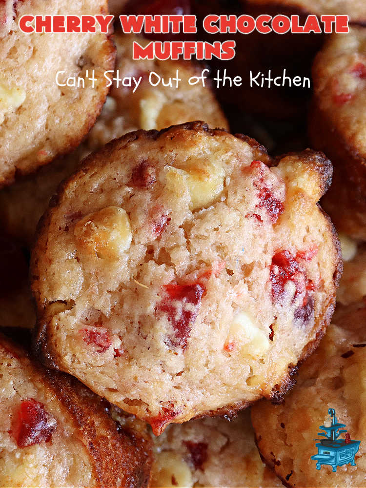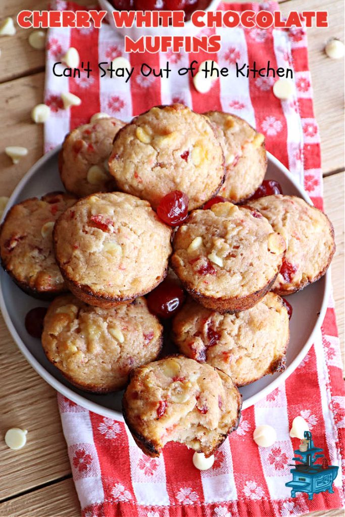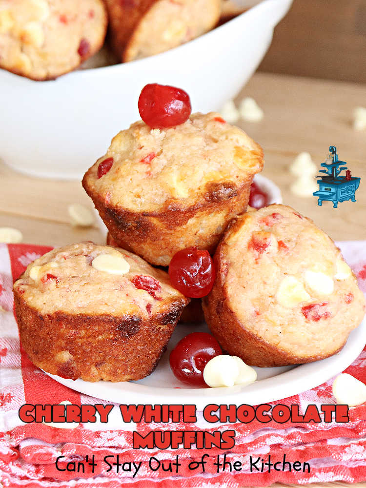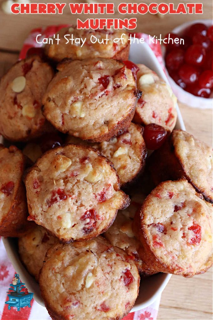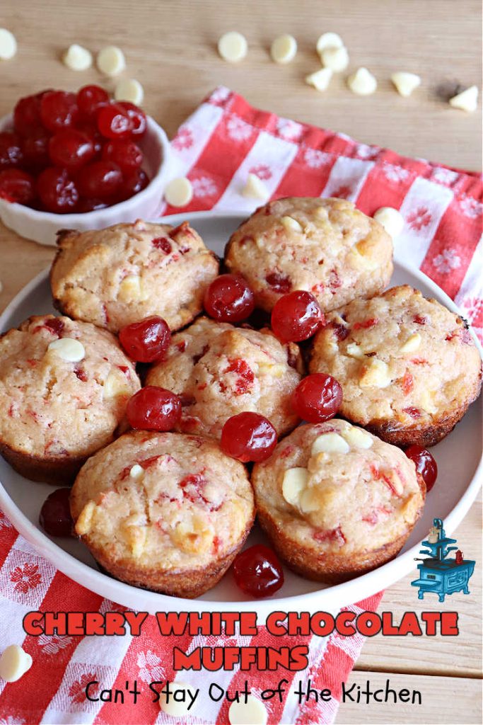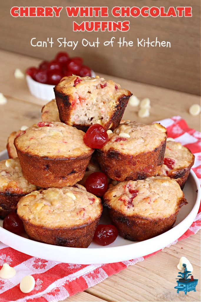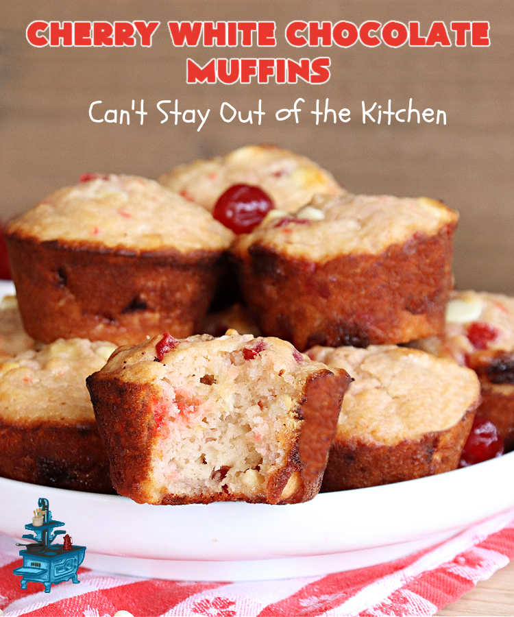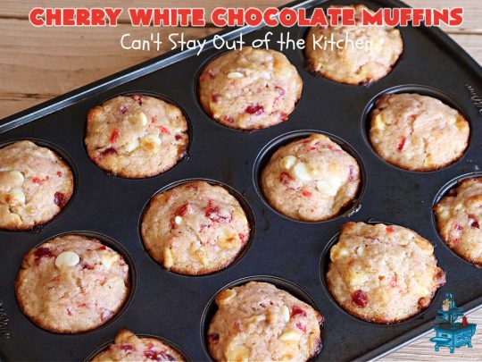 Cherry White Chocolate Muffins are wonderful for a holiday breakfast or brunch.