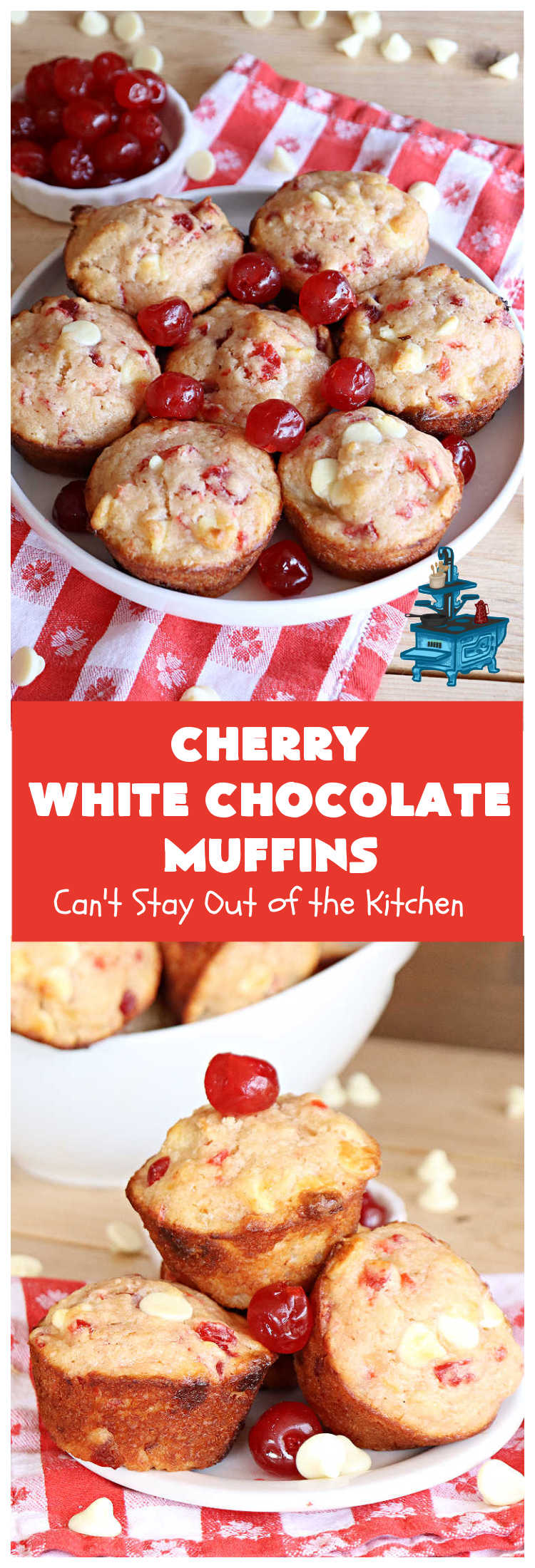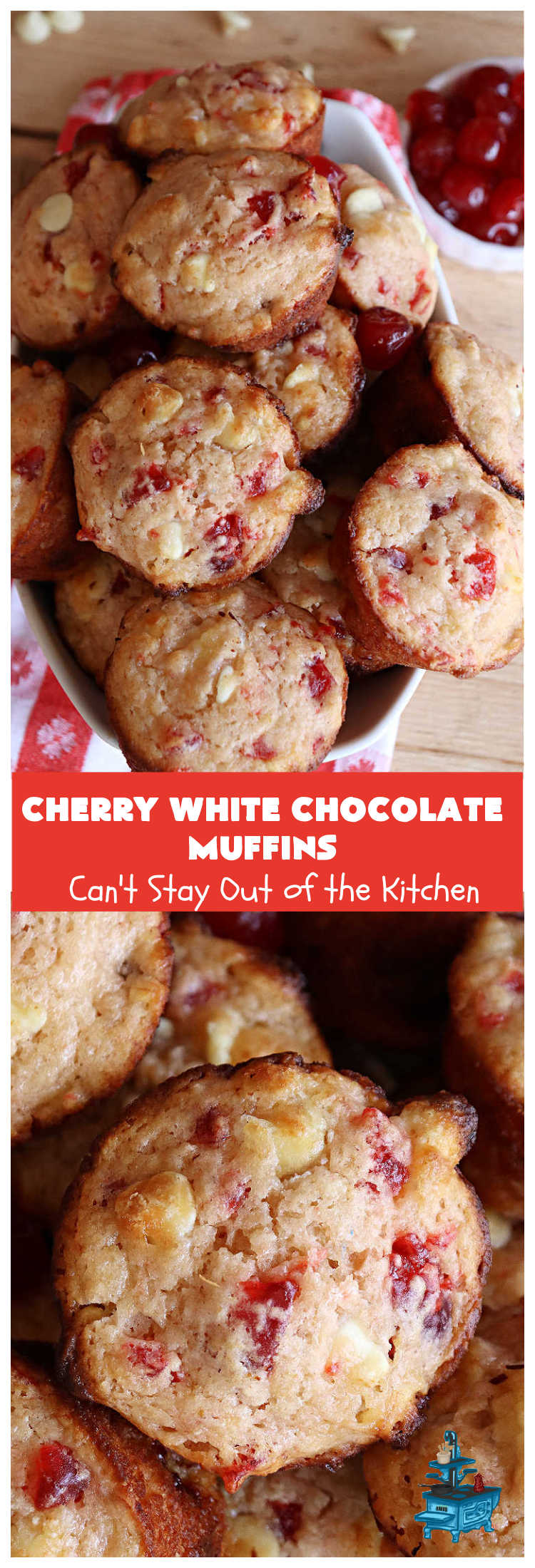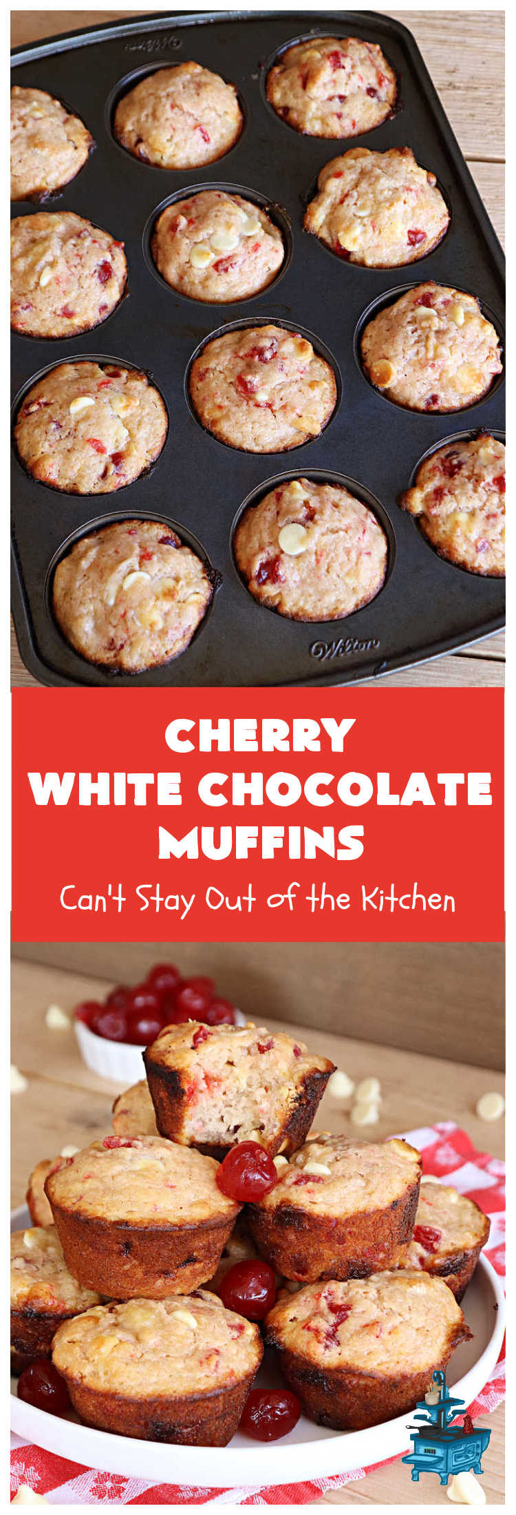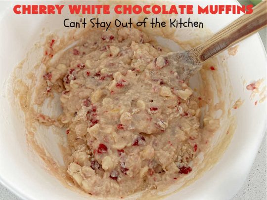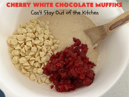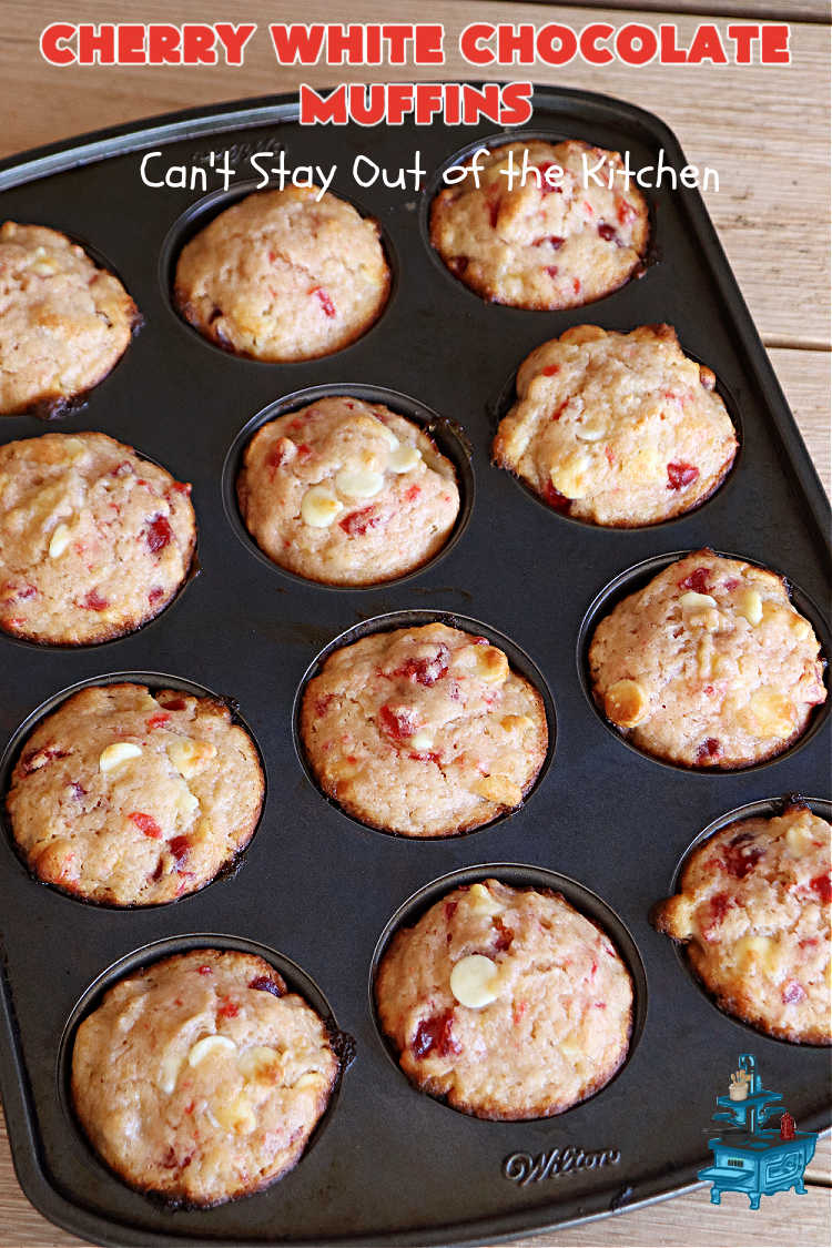 Cherry White Chocolate Muffins are wonderful for a holiday breakfast or brunch.